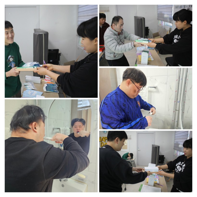 또한 스마일재단에서 제공해 준 구강관리용품 세트는 이용인들의 일상 속 필수 아이템으로 자리 잡아 칫솔, 치약, 구강관리 도구를 각자 생활 속에서 직접 사용해 보며, 스스로 구강건강을 챙기는 습관이 조금씩 자리 잡아가는 모습이 매우 인상적이었습니다.