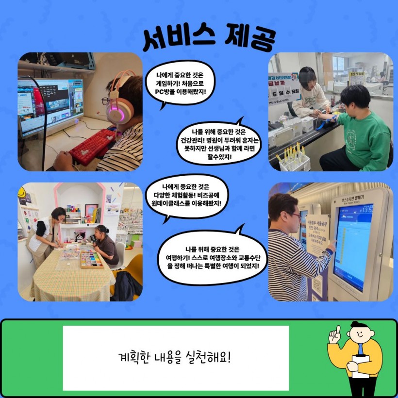 우리 센터에서는 2025년 개인별지원계획 '나의 이야기' 서비스를 통해 이용인에게 중요한것과 이용인을 위해 중요한 것을 계획하고 실천하는 시간이 되었습니다.