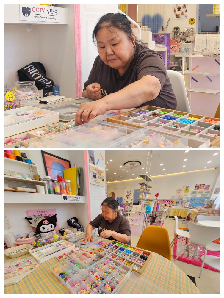 또한, 여가시간에 활용할 수 있도록 원하는 비즈공예 재료를 직접 구입해보는 활동도 함께 진행되었습니다. 스스로 선택한 재료들을 손에 쥐고 기뻐하는 모습에서 앞으로의 즐거운 여가생활이 기대되었습니다.