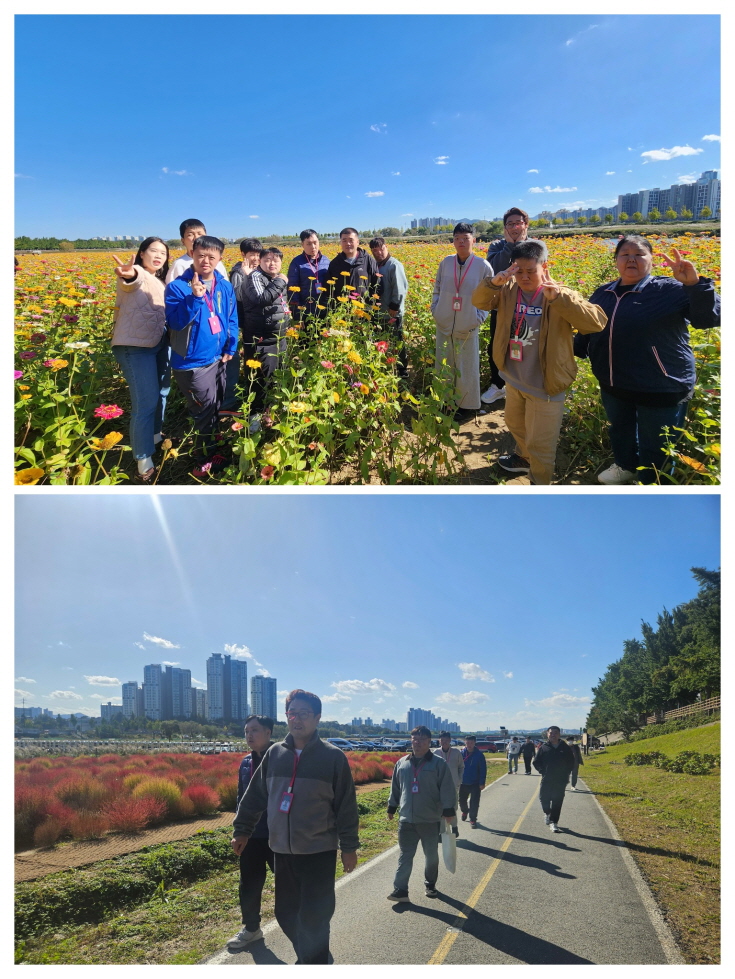 곡교천에는 알록달록 핀 코스모스와 흔들리는 갈대가 반겨주었고, 따뜻한 햇살 아래 천천히 걸으며 모두의 얼굴에도 미소가 피어나고, 산책길 곳곳에서 들려오는 웃음소리에 가을 풍경이 더 아름답게 느껴지는 시간이었습니다.